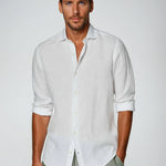 A tiszta fehér szín friss és örök megjelenést kölcsönöz ennek a vászoningnek, amely bármilyen alkalomra megfelelő. Kombinálja könnyű nadrágokkal vagy chino nadrágokkal nyári és elegáns megjelenésért, vagy viselje sötét nadrágokkal klasszikus és elegáns öltözékhez. Az örök dizájnjának köszönhetően ez az ing kötelező darab minden gardróbban.