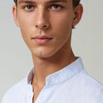 A Grand Arbre világoskék lenvászon ingje álló gallérral gondosan kidolgozott, és a legmagasabb szabványoknak felel meg. Tökéletes egyensúlyt kínál a kényelem, stílus és funkcionalitás között, és elengedhetetlen a modern férfi számára.