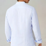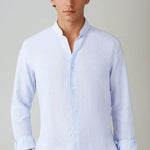 Világoskék lenvászon ing álló gallérral